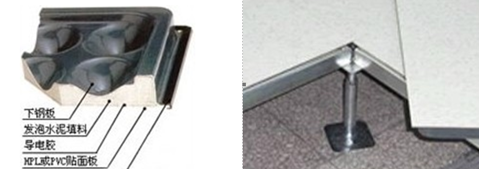 4、该机房采用全钢防静活动地板。该防静电活动地板采用优质合金冷轧钢板,经拉伸后点焊成形。外表经磷化后进行喷塑处理,内腔填充发泡填料,上表面粘贴高耐磨的防静电贴面。横梁采用优质管钢,四周无焊缝,整体做镀锌防腐处理。支架上托、下托采用模具一次冲压成型,套管采用无缝钢管,整体做镀锌防腐处理。